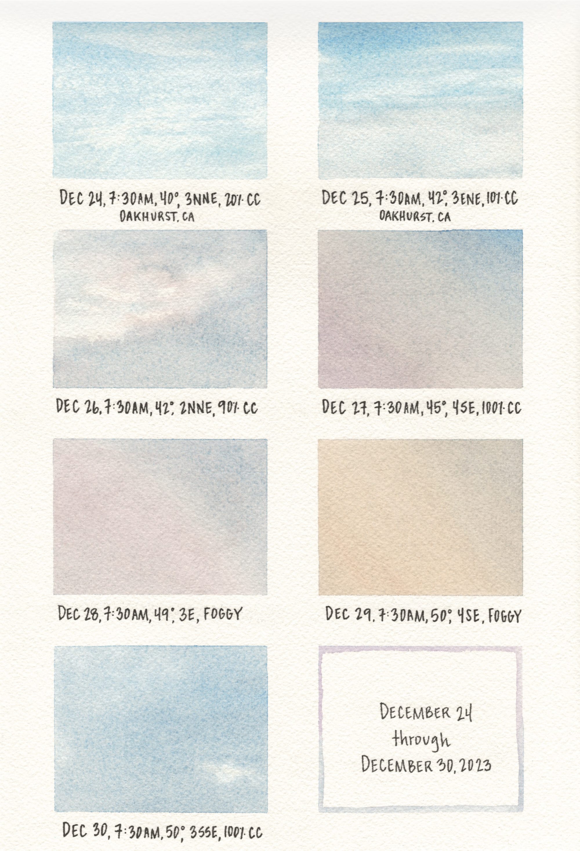 Moving forward, I'm going to continue to paint skies each day, but I'm also going to be less rigid about the time of day (7:30 a.m.) and the direction I face when I paint (south) because I see how these rules could get in the way of me engaging with this activity in the long run. Since the most important part of painting skies for me is connecting with the process, rigidity will need to go.