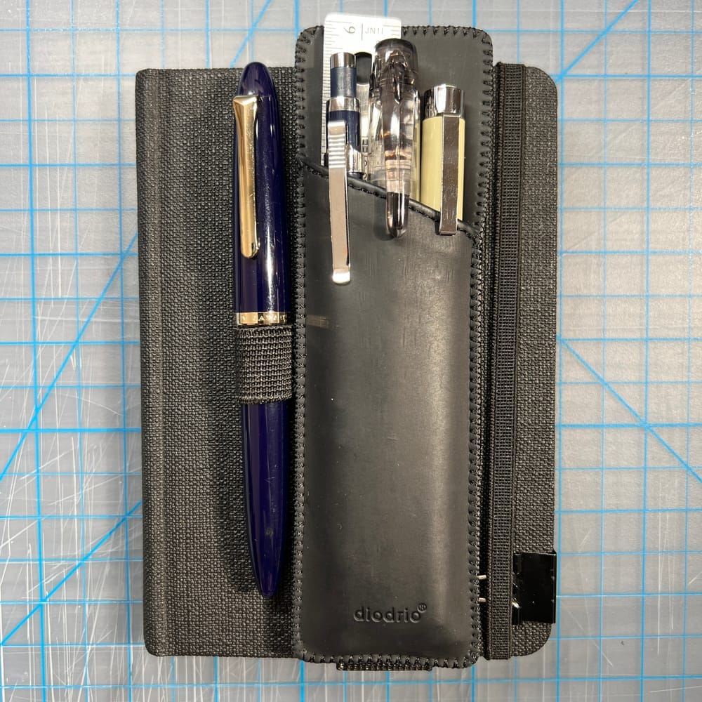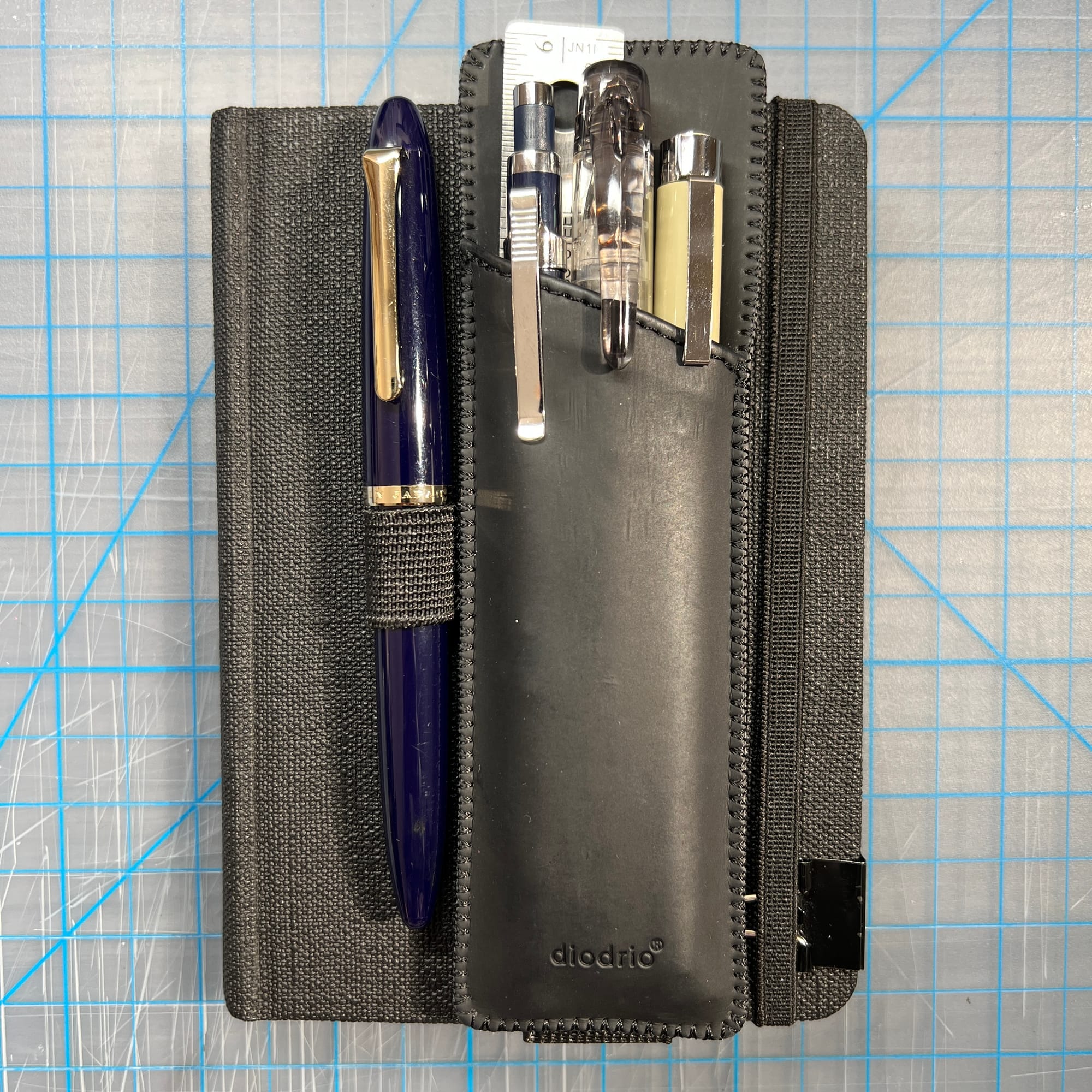 - I like to keep my most-used pencils and pens attached to my sketchbook at all times. To do this, I use a Diodrio Adjustable Pen/Pencil Holder, to which I stick a ProCase Loop Holder to add one more slot.
