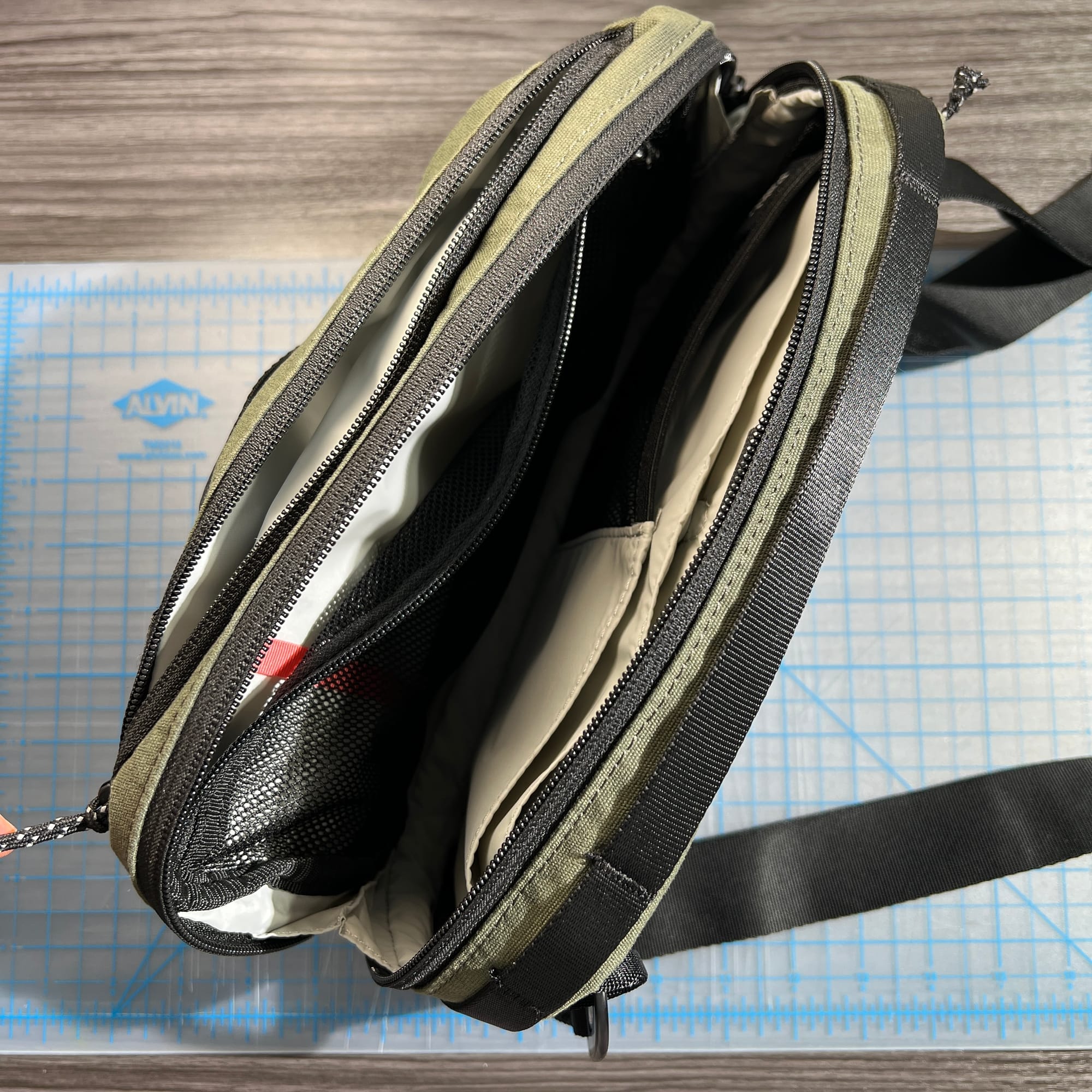 The Pakt Everyday 5L Sling bag is gushing with organization. I use it when I want to pack the whole kitchen sink of art supplies + other items.