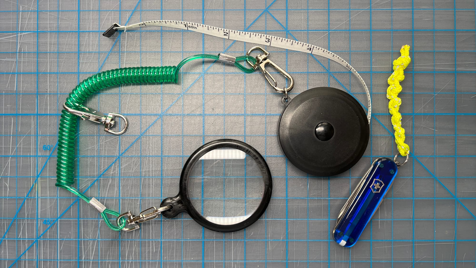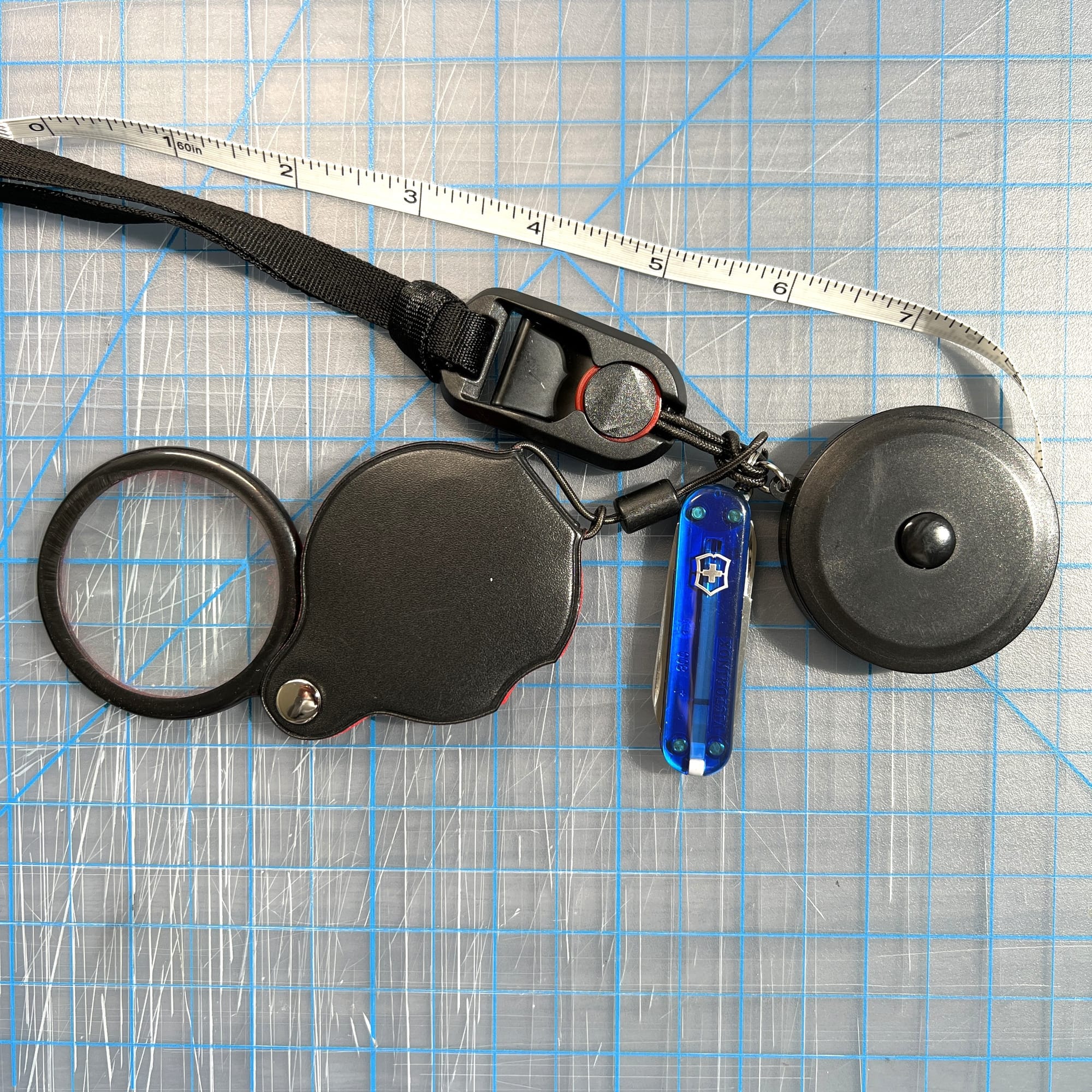 Some handy items include a magnifying loupe, a pocket knife for field clippings, a measuring tape, and a mini pocket blanket.