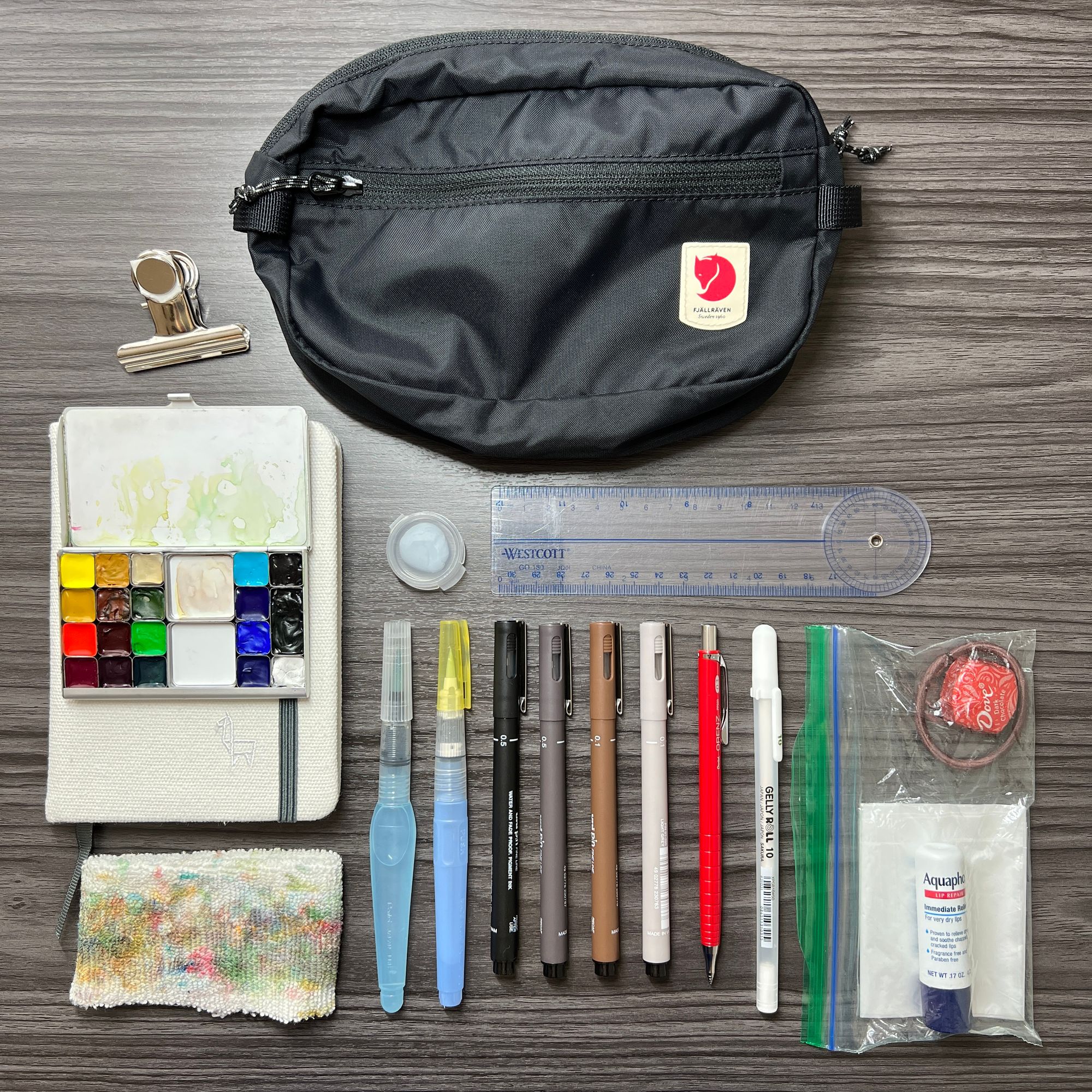 One of my challenges with art is that I love using a wide range of tools. This preference isn’t a problem when I’m creating at home, but as soon as I want to venture into the field, I’m faced with storage capacity limits and efficiency issues with each progressive tool I add to my kit. All those tools add up in more ways than just weight.