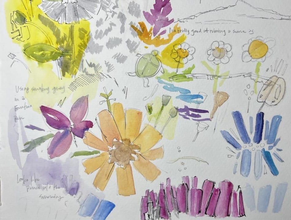 I explained that they're the entries you make to warm up when sketching, but I have come to enjoy them so much that I often make them my only activity in a sketching and painting session when winding down at the end of a long day.