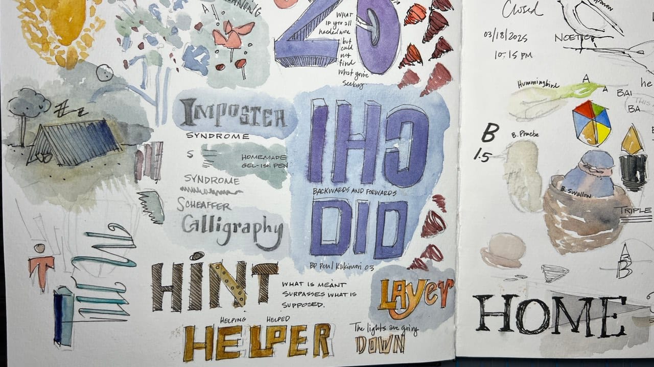 I handed her one of my journals and a pencil...then brush pens, a Fude nib, and a suggestion: "Just doodle. Make pancakes."