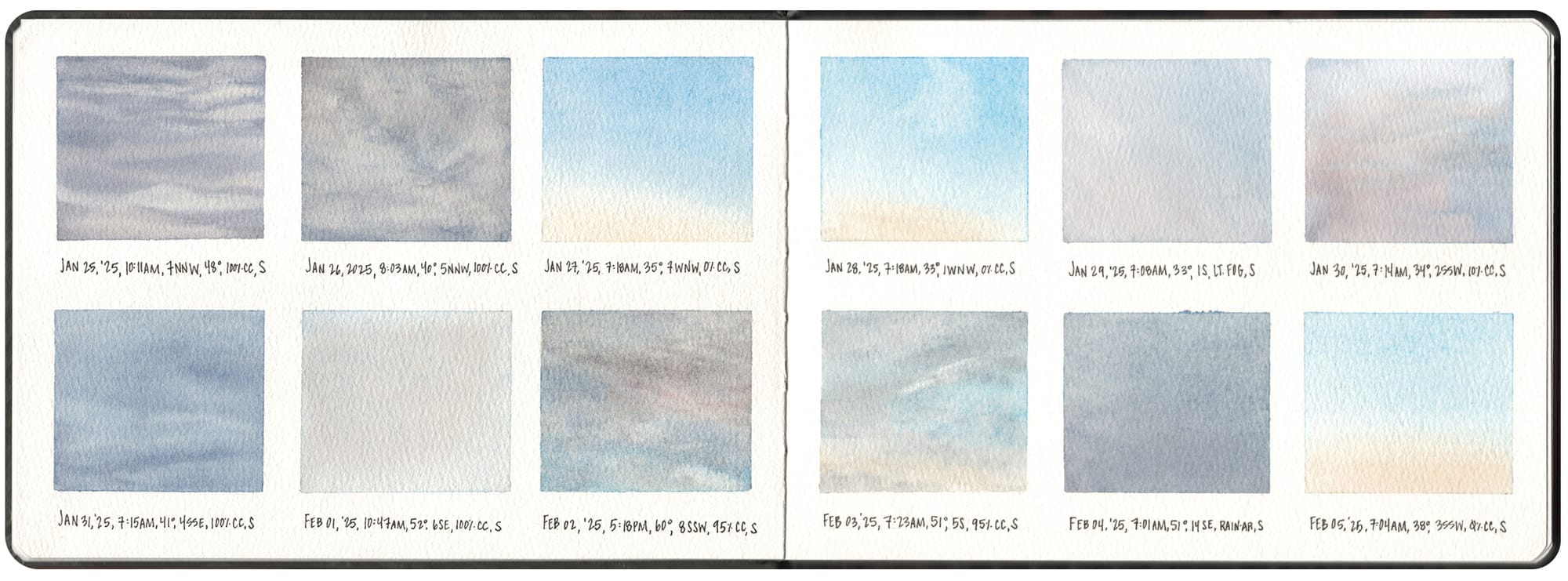 Watercolor windowscapes for January 25 through February 5, 2025 | Year 3 of my 365 Skies project