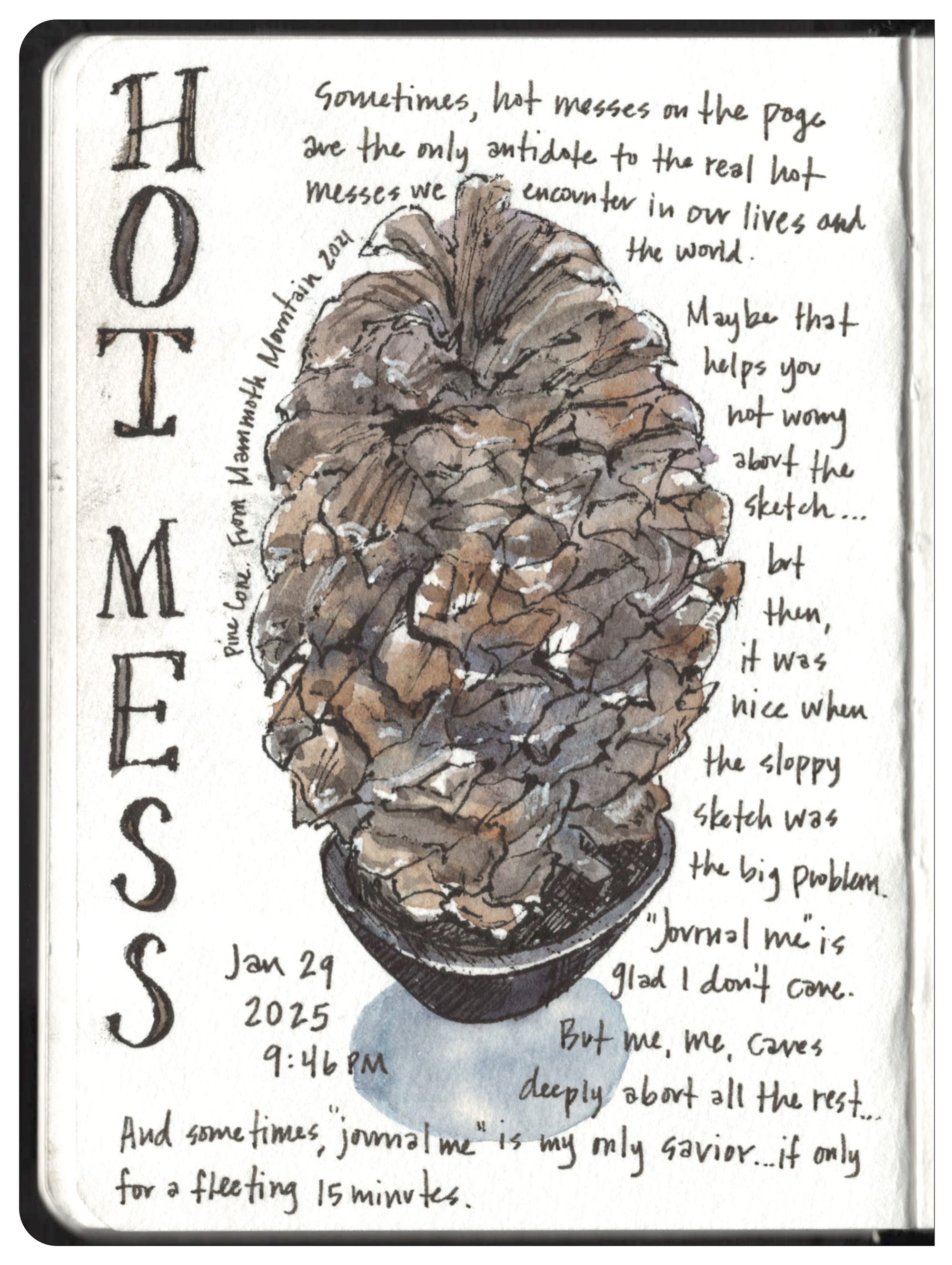 01/29/2025: Sometimes, hot messes on the page are the only antidote to the real hot messes we encounter in our lives and the world. Maybe that helps you not worry about the sketch...but then, it was nice when the sloppy sketch was the big problem. "Journal" me is glad I don't care. But "Me" me, cares deeply about all the rest...and sometimes "Journal" me is my only savior...if only for a fleeting 15 minutes.