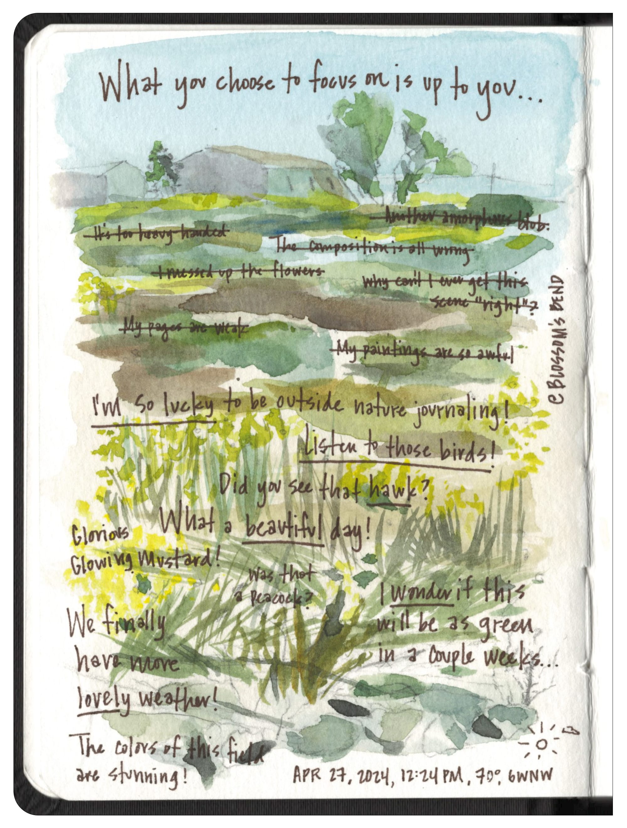 The solution: I embraced the “something is better than nothing” mindset, knowing I would bike away happier if I at least tried, so I took out my nature journal with my only goal being to merely start, even if I had to stop within a few minutes.