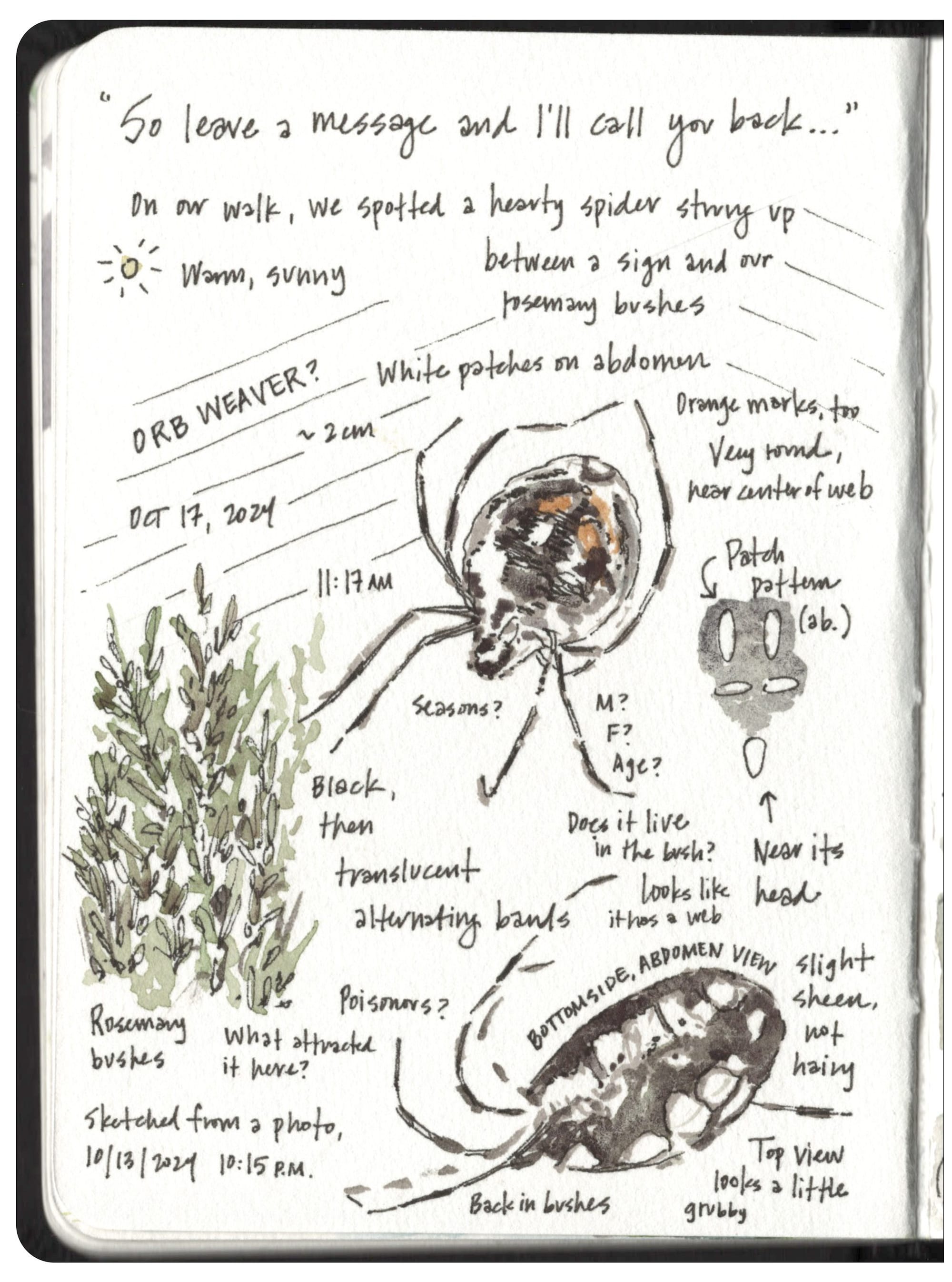 If you have pets, they're nature too, even if sketching your napping cat or wiggle-pup requires quick work. And don't overlook the uninvited spider in the corner!