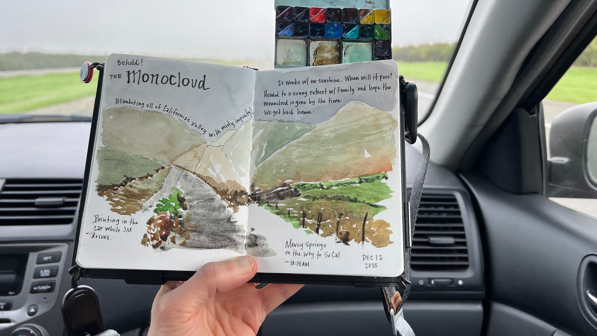You can also journal in unexpected moments, like sketching landscapes through a car window while traveling (just make sure you look up often and maybe don't attempt if you're prone to motion sickness). Definitely don't attempt unless you're a passenger! 😅